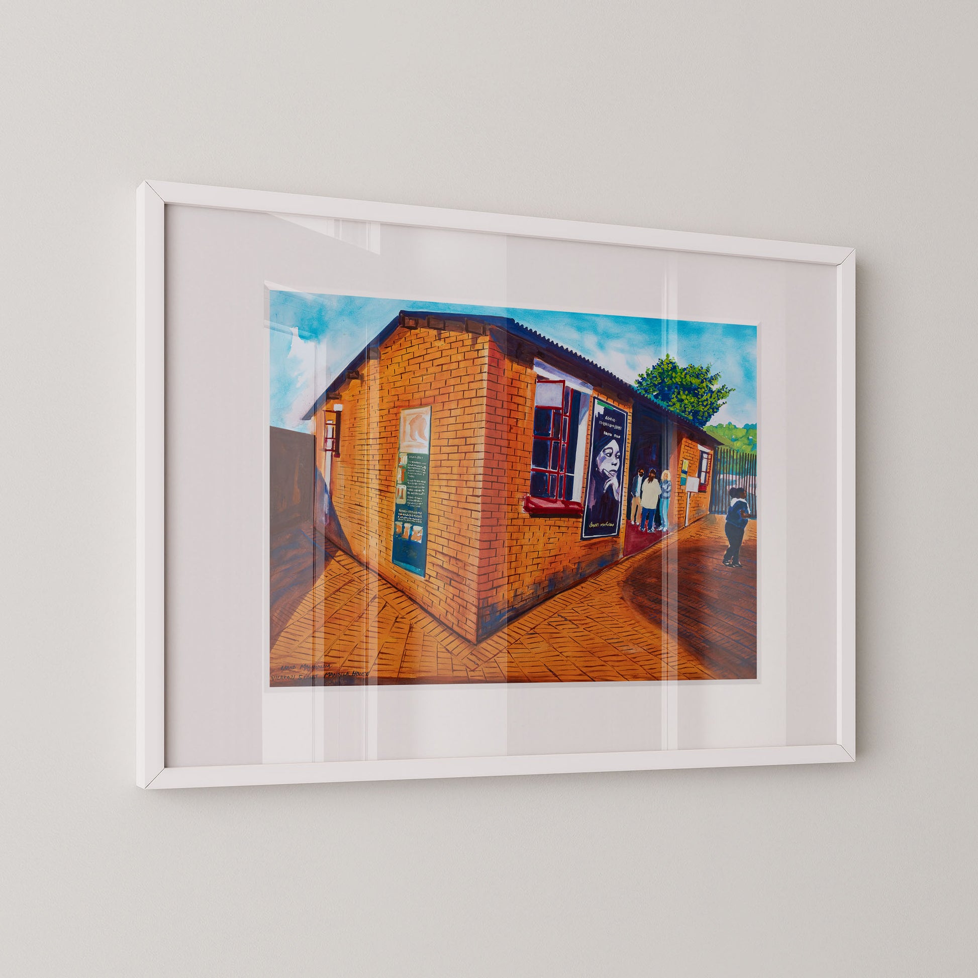 This powerful work captures one of South Africa’s most significant landmarks: Mandela House, the former home of Nelson Mandela on Vilakazi Street, Soweto. Painted with rich, warm tones and subtle detail, Grand Maghandlela portrays not just a building, but a legacy of courage, struggle, and hope. It was here that Mandela lived before and after his 27-year imprisonment—now a museum, it continues to inspire generations.